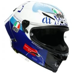 The AGV Pista GP RR Misano 2020 Helmet meets stringent FIM Racing Homologation standards and provides the highest level of protection, even against glancing impacts that can cause rotational motion. Carbon fiber molded into an innovative shape lets the helmet move through air effortlessly. AGV’s Integrated Ventilation System (IVS) uses 5 large front metal air vents and 2 rear extractors to let air pass through the helmet freely. Four shell sizes used across 7 different helmet sizes get a closer fitting shell compared to other helmets. The helmet was designed for an aggressive tucked racing position with a face shield allowing for a maximum vertical view and wide horizontal view. AGV’s patented Visor Lock System (VLS) decreases the chance that the face shield comes opens in a crash. With a fit developed for MotoGP racers, the Pista GP RR’s lining allows for an optimized fit and positioning on your head. Everything about the AGV Pista GP RR Helmet is designed for high speed track performance.Â