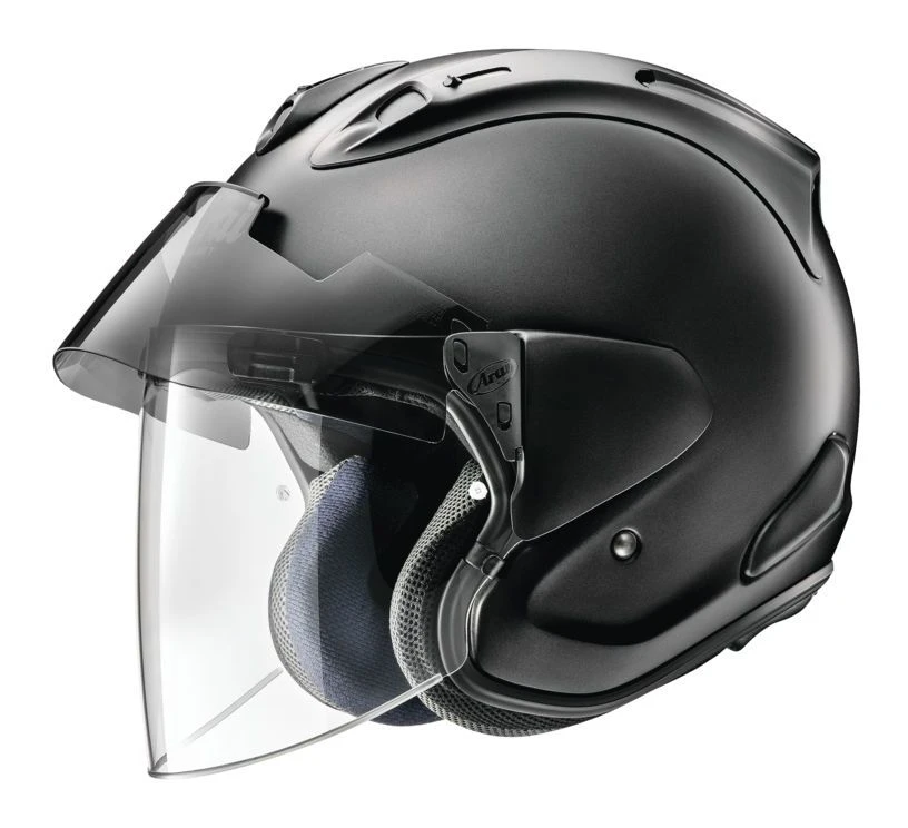 With the Ram-X, Arai takes a leap forward from their previous premium open-face touring helmet, the XC. The Ram-X features the newly designed VAS-Z shield system with a lower pivot point providing smooth actuation and improved safety. In a nod to touring riders, the Ram-X includes a Pro Shade System out of the box which provides the convenience of a drop down sun visor without compromising the shell and thus safety of the helmet. Taking design clues and the ventilation scheme from Arai’s race helmet, the Corsair X, the Ram-X offer best-in-class ventilation for a comfortable ride no matter what.