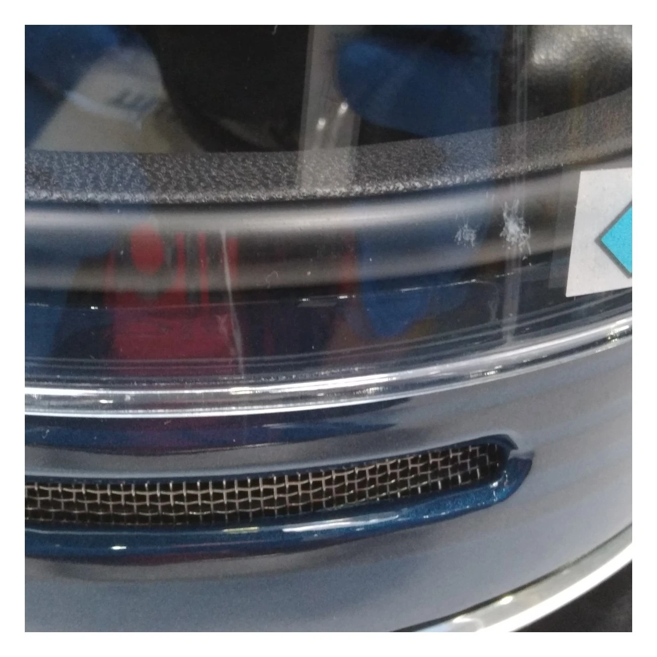 There are scratches at the base of the face shield.