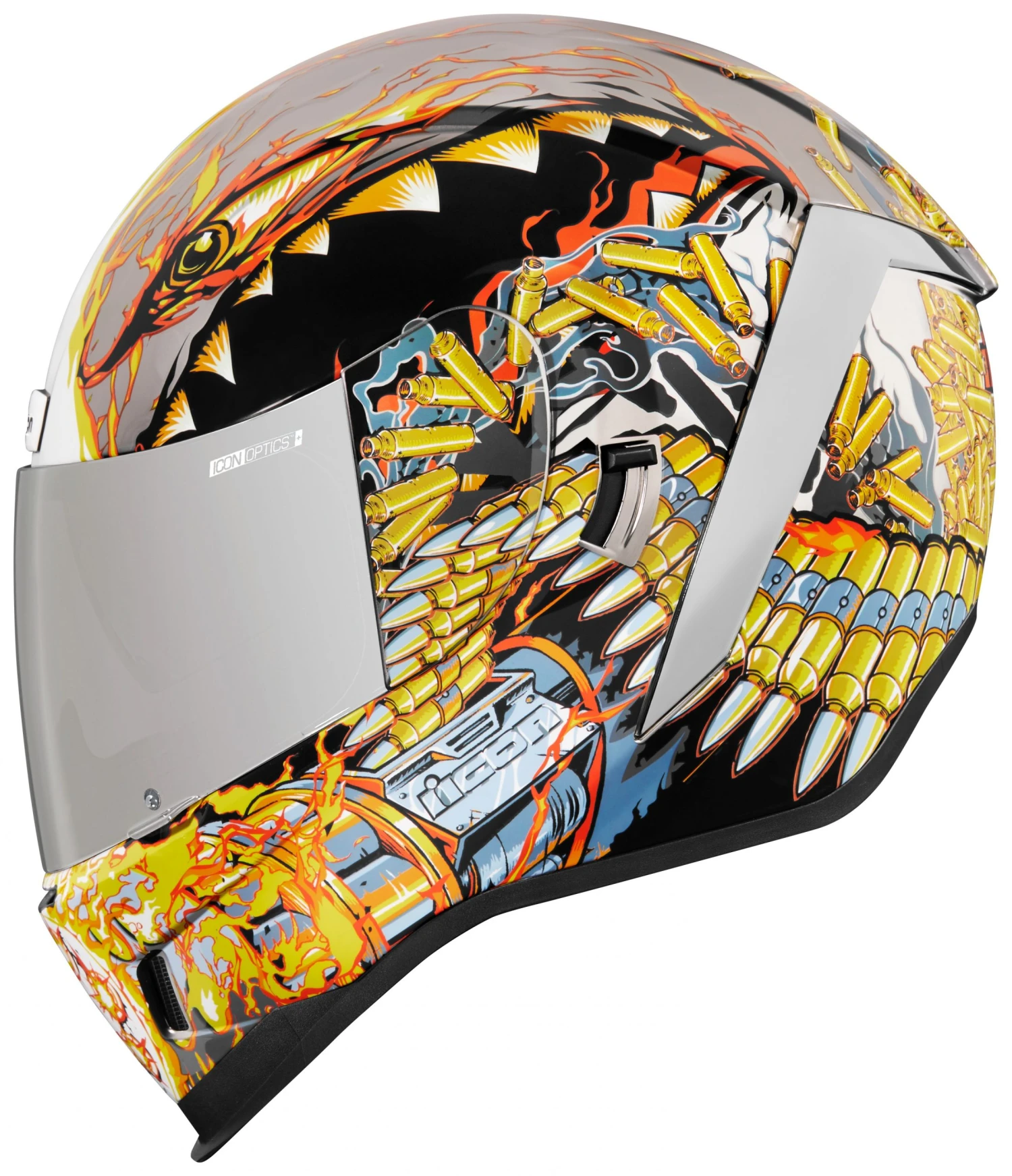 Built for riders who need the accouterments of a touring helmet with the performance of a track helmet. When you want to have your cake and eat it too the Airform is a baker’s dozen of aggro-cupcakes. The Icon Airform Helmet pilfers the best ingredients from the performance oriented Airframe Pro and the feature rich Airflite. Icon then pats it, rolls it and marks it with a B before sliding it into an industrial oven for you and me. The result is an everyday helmet, if your everyday includes commuting to work in an aggressive riding posture or leisurely attacking apexes while on tour. Hold onto your buns, baker’s man.