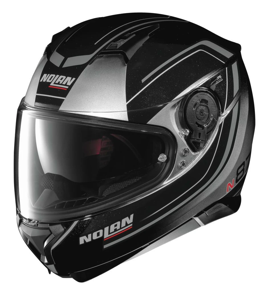 The N87 has an ultra-wide face shield, a fully adjustable VPS sunscreen with 400UV protection, a Microlock2 double lever retention system, and is set up for the Nolan N-Com communication system.