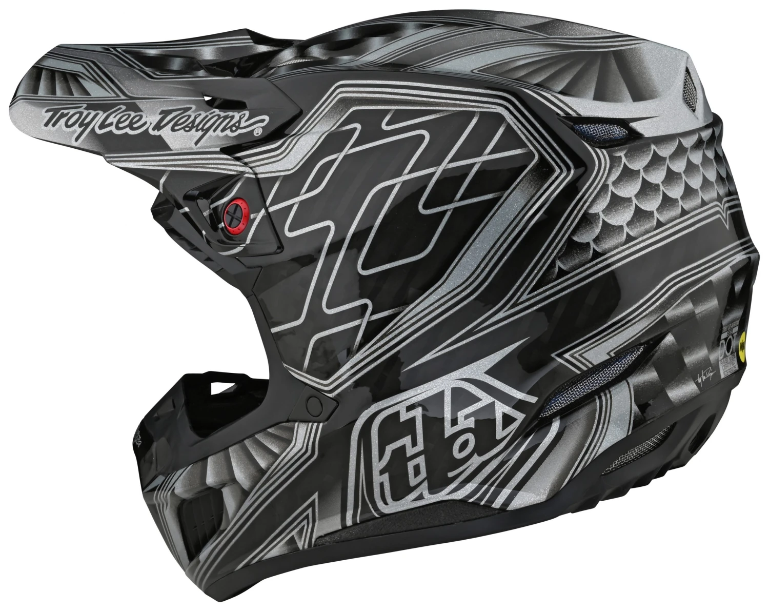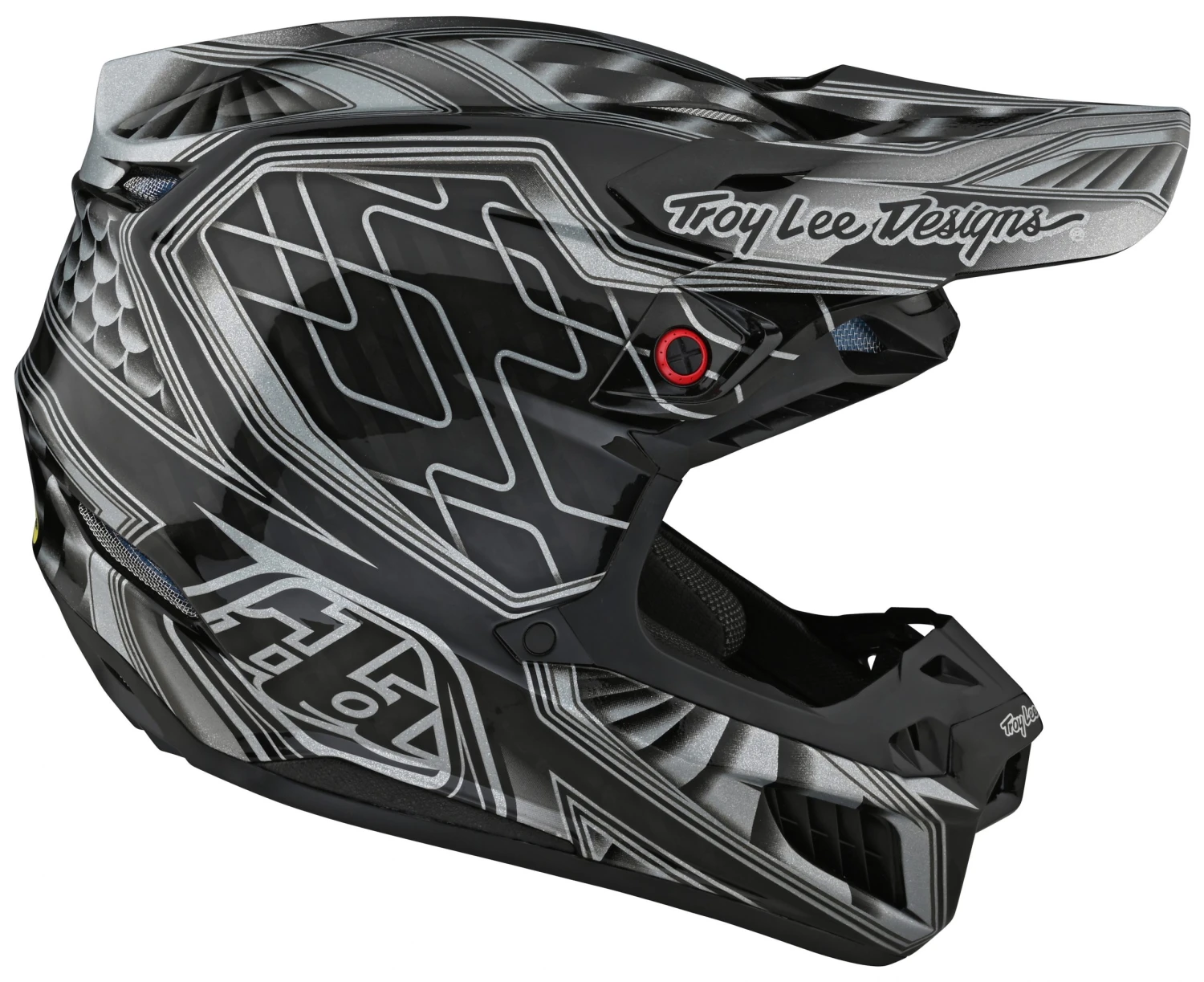 Sitting at the top of Troy Lee’s SE food chain, the SE5 Carbon is a premium motocross helmet designed with the latest technology, protection and style in mind. Developed alongside Troy Lee’s lineup of world class athletes, this helmet features a performance optimized layup carbon shell, in-molded MIPS brain protection, dual density EPS, a chin bar with collarbone suspension system, 3 separate shell / EPS sizes for the most accurate possible fit, lightweight titanium d-rings, shearing break away screws for visor impacts, and a forced air intake system spanning the whole helmet. With features like these it is no wonder this helmet is the choice of racers and riders across the globe.